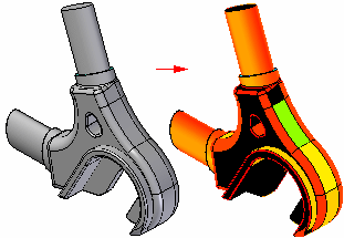 Displays the Curvature Shading Settings dialog box so you can define the curvature shading properties you want to display on a model. Use the command to graphically visualize the radius of curvature of a model.