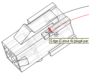Select the circular edge shown in the illustration to define the end point for the wire.