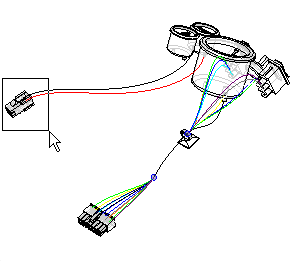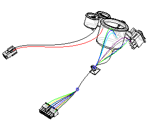 The Bundle command creates a harness bundle from a set of wires and cables. The result is a single path that can be created across several components within the harness assembly. When defining the path, you can define points to create the path or you can select an existing path created with the Path command. For this bundle, a path has already been created.