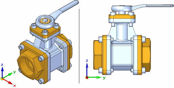 在图形窗口的右下角显示定位三重轴。定位三重轴显示视图 x、y 和 z 轴的当前方位。在旋转视图方向并在测量元素或零件之间的距离时,该选项很有用。