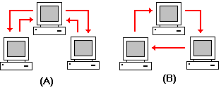 会签单可用来将文档发送至一个或多个用户以进行审核。会签单允许列示应接收包含有附加文档的邮件的用户。可以将文档一次发送至所有用户 (A),也可以一个用户接一个用户的方式发送 (B)。