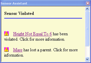 In the Sensor Assistant, scroll until the specific warning or violation is visible, and then click the sensor name hyperlink.