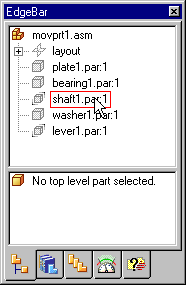 Notice that SHAFT1.PAR is not fully positioned. You can only move parts that are grounded or not fully positioned. If a part is fully positioned, you can use the Suppress command on the shortcut menu to temporarily suppress a relationship.