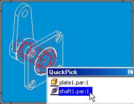 In the application window, use QuickPick to select SHAFT1.PAR. On the Drag Component command bar, set the Move option.