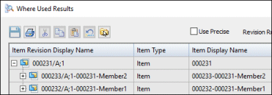 In QY CAD, when you work with Family of Assemblies, you always open a FOA member. However, the results of the Where Used command displays the member in context of its master. The master is displayed at the top of the structure with members below it.