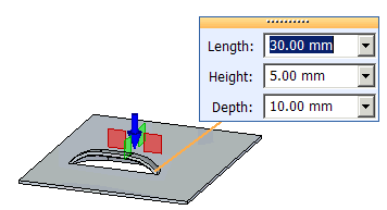 In the synchronous environment, you can move a louver along the face or edit the louver parameters to change such things as the height, length, or depth of the louver.