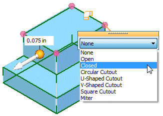 On the dynamic edit control, select a corner treatment change.