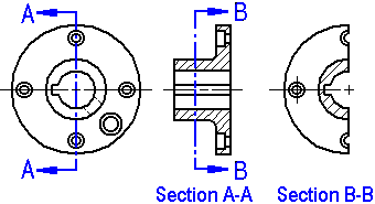 The view annotation captions on the cutting planes (A, B) are controlled independently of the section drawing view captions (SECTION A-A, SECTION B-B).