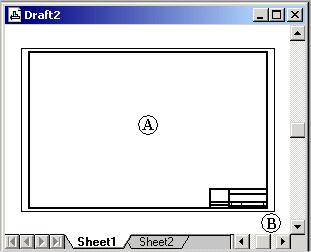 The sheet outline (A) shows the orientation and print region of the sheet. You can change the size and orientation of the sheet outline in the Sheet Setup dialog box.