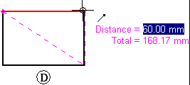 In the Draft environment, or when sketching in a model, the Measure Distance command measures a linear distance between points, or it measures the cumulative linear distance along a series of points. You can measure between elements in the same drawing view or in different drawing views. Options on the Measure Distance command bar display the distance value using the scale of the geometry in a selected drawing view or using a custom scale value.