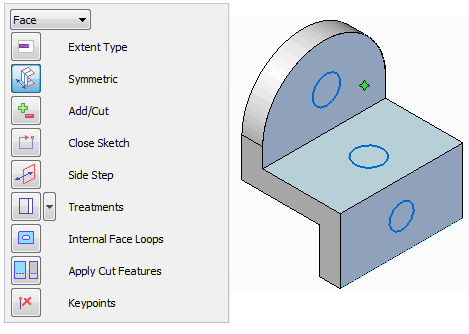 QY CAD provides a feature-based modeling workflow. This workflow is where you select a feature construction command first, such as Extrude, Hole, or Round, and then the software guides you through the rest of the process, letting you know what type of input you must provide at each step.