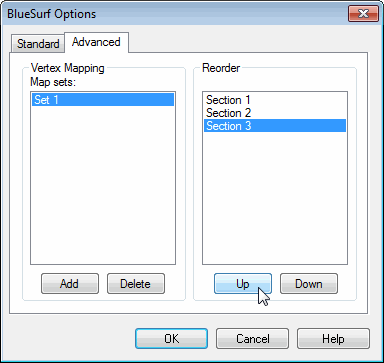Cross section C3 is shown as Section 3. To reorder C3 to be between C1 and C2, click Section 3 and then click Up. Click OK to apply the reorder.