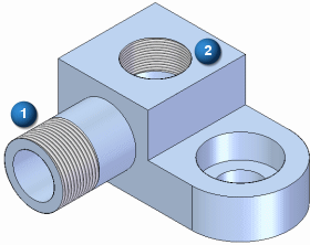 to add a straight or a tapered thread reference to an existing cylindrical face. The cylindrical face can be a partial or complete cylinder, and can be an external (1) or internal (2) face. A planar, circular edge is required to define the start end for the threads.