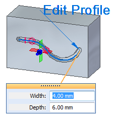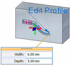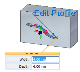 Note:The appearance of the dynamic edit box depends on the type of slot. For example, for counterbore slots, you can also edit the path offset and depth offset.