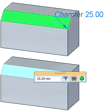 When recognition is complete, the Chamfer Recognition dialog box appears with the recognition results. If no recognizable chamfers are detected, a message box appears stating “No recognizable chamfers were found." The dialog box contains a row for each chamfer or set of connected chamfers detected. All detected chamfers are checked for conversion to chamfer features. Clear the check box if you do not want the detected chamfers to convert to a synchronous chamfer feature. Click the OK button to perform the conversion.
