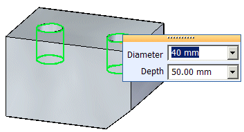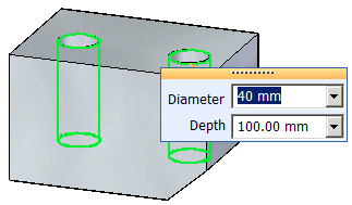 In the following example, two 100 mm finite depth holes are placed as a group in a block.