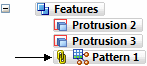 To edit a synchronous pattern-by-table feature, select the feature and then click the pattern handle. You can edit any step used in the pattern definition.