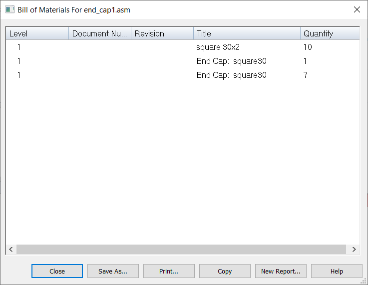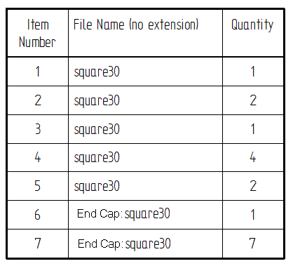Drawings created from the frame assembly will display and list the end caps in the parts list.