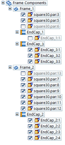 After you create frame end caps, unique end caps are listed under each frame member in PathFinder.