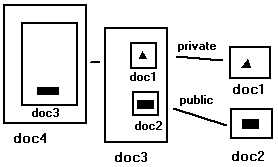 A symbol that is placed into a document which is then placed as a symbol in another document. Symbols that are public display across different documents. Symbols that are private only display in the first document.