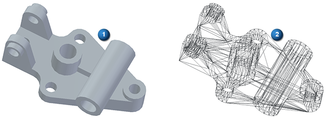 This command converts the selected solid design body to a mesh. All the features previously associated with the design body are merged into a single mesh body feature, which is added to the Features container of PathFinder.