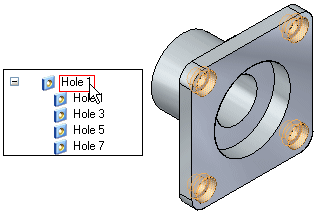Example:You may need to modify the diameter of one hole in a set of holes that originally had the same feature parameters, such as diameter and depth.