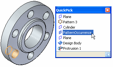 When you highlight or select one of the feature instances within the set, the feature instance is highlighted or selected. Because they are part of a set, if you edit the parameters for one of the holes in the set, all the members of the set are modified.