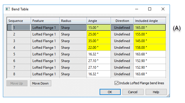 You can use the Move Up and Move Down buttons on the Bend Table dialog box to change the sequence of the bends.