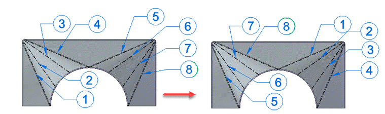 If you select a bend (A) within a lofted flange bend region to reorder,