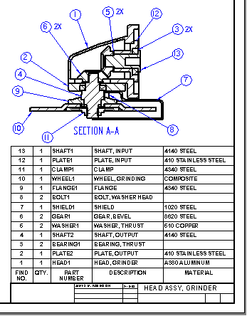A QY CAD parts list on a drawing is associative to the part view you select to create it. You can add balloons automatically to the drawing, and the balloons can be numbered to correspond to the part entries in the parts list.