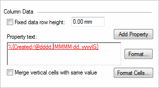 Specifies the property text definition in the currently selected column.