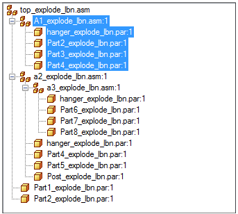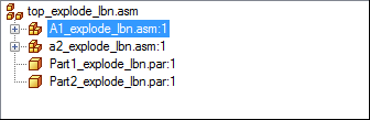 Example:Assume that in assembly top_explode_lbn.asm, you open the Occurrence Properties dialog box for the subassembly A1_explode_lbn.asm and set User-Defined=Yes and Quantity=2.