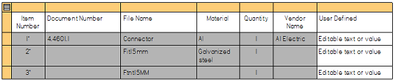 If you want to include a column with editable data cells in an associative table, such as a parts list or bend table, then create a user-defined column.