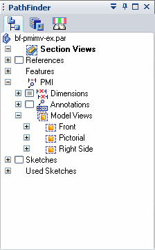 (Apply a view to the model) If you have multiple PMI model views, right-click a model view name on PathFinder, and then choose Apply View.