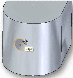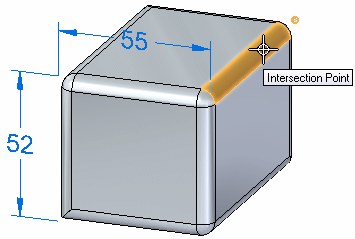 Example:This example shows an intersection point selected for a cylinder in a rounded face.