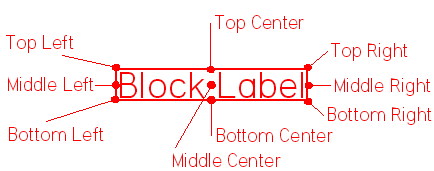 The text justification options are shown here, where the filled dots represent the label origin point.
