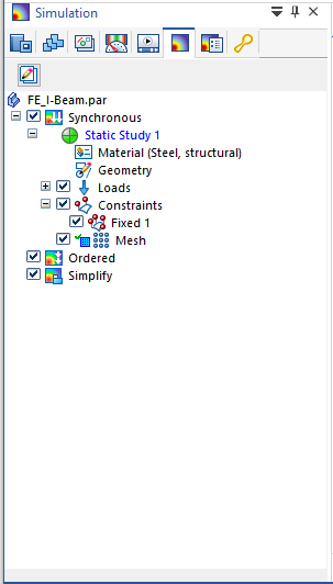 Your simulation model is shown in the graphics window, along with your previously applied loads and constraints.