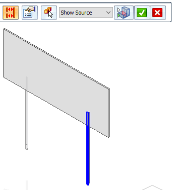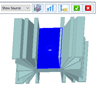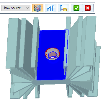 Click the edit definition handle once to display the command bar options for showing the source and target connected faces and for hiding unconnected parts.