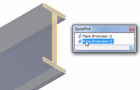 Zoom in on the right end of the beam. Use QuickPick to select the end face.