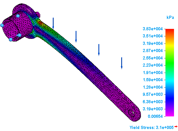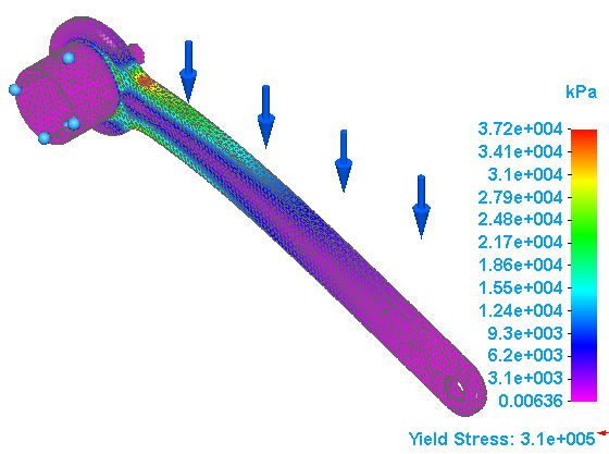 Repeat the previous steps for meshing the model and solving the analysis, but this time for the Pressure on handle study.