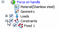 Note:You can expand the Constraints collector in the Pressure on handle study to confirm that the Fixed 1 constraint was copied.