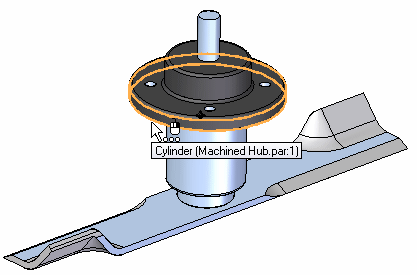 Select the cylindrical face and the plane on the bottom of Machined Hub; right-click to accept.