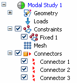As you did previously, select all of the parts in the assembly. Repeat the fixed constraint and assembly connector steps. You also can copy and paste the constraint and connectors from the first study to the second study.