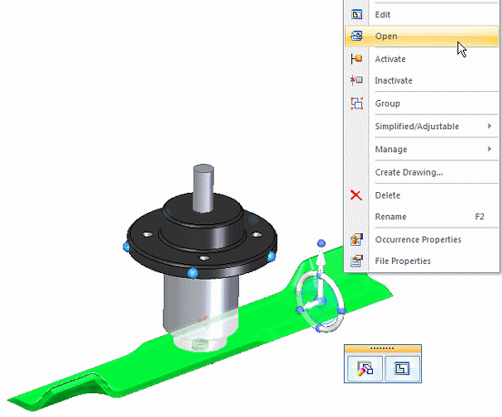 Right-click the blade part and select Open.
