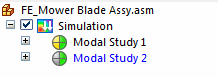 Use modal analysis to find the natural frequencies at which a mower blade assembly resonates when a constraint is applied to it. The objective is to verify that the natural frequencies (resonance frequencies) do not approach the operating frequencies of the assembly.