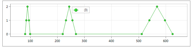The XY plot below from Femap help shows three peaks, one peak for each of the first three modes. The Y value is arbitrary on this plot, but the X-values are an excellent way to visualize where the excitations are occurring with respect to the frequency range. Also, the width of the base of each peak represents the frequency bandwidth associated with each frequency.