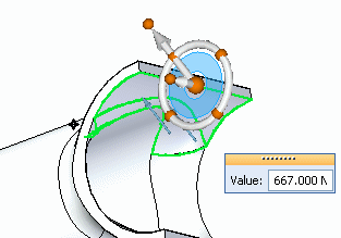 Type an angle of 150° and click in the upper-left quadrant of the steering wheel torus.