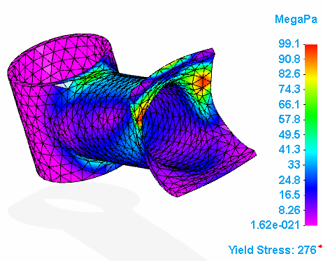 After a few moments, the part is meshed and solved. Stress results are displayed in the Simulation Results environment.