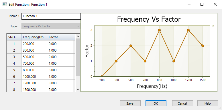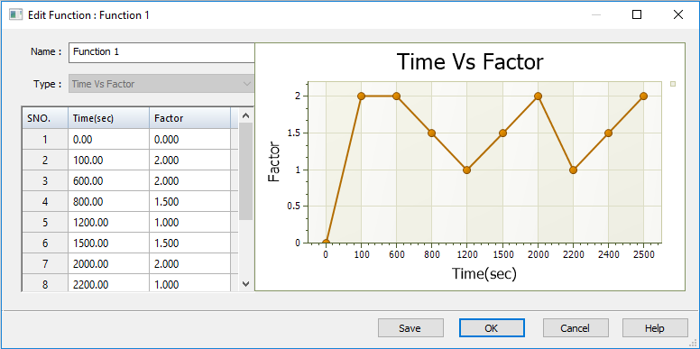 As you add or remove values for a function, a graph of the function loading trajectory is plotted in the dialog box.