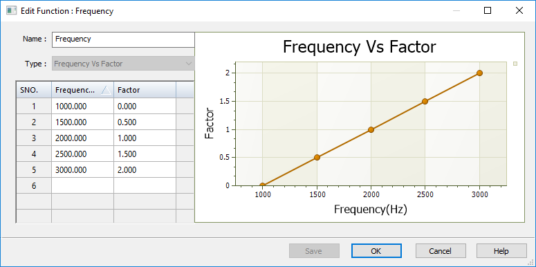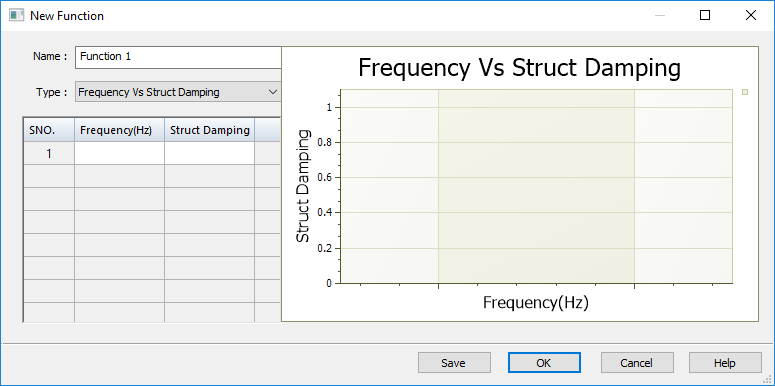 In the New Function dialog box, enter the X-axis Frequency(Hz) values, and the Y-axis Structural Damping values. These are based on known values in your design.
